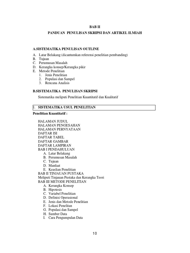 Pedoman penulisan skripsi ini terkadang ada sedikit perbedaan sehingga perlu melihat lagi pedoman penulisan skripsi di masing-masing universitas namun demikian tidak menutup kemungkinan digunakan oleh mahasiswa mana pun. Terima Kasih Atas Kunjungannya. May AM Ok Pak Pencerahan pembuatan skripsi sangat membantu ediContoh Kerangka Penulisan Skripsi Bab dan Bab BAB I PENDAHULUAN A.